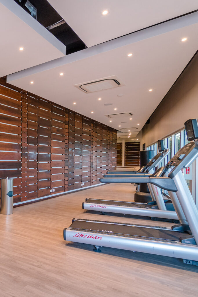 A modern gym with ocean views, featuring professional-grade cardio and strength equipment. Stay active without leaving the comfort of home.