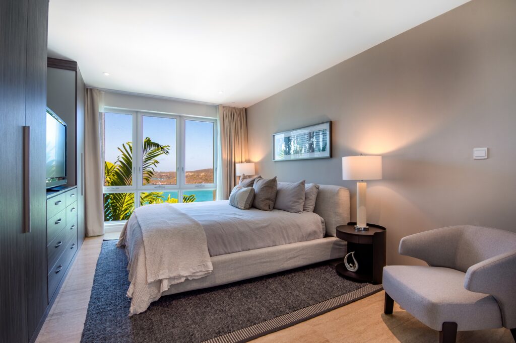 Spacious bedrooms with premium linens, walk-in closets, and floor-to-ceiling windows framing the Caribbean Sea. Wake up to paradise every morning.